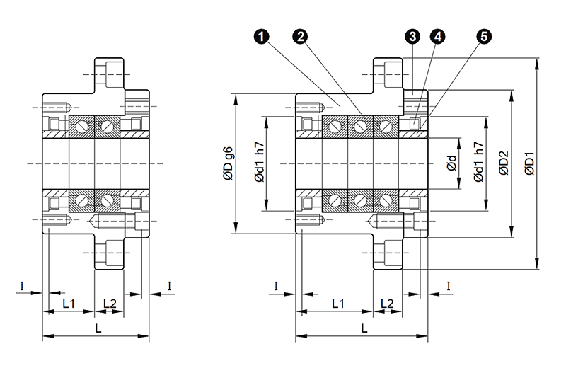 | 型號 | d | D | D1 | D2 | L | L1 | L2 | A | W | X | Y | Z | d1 | I | V | P | Q | H |
