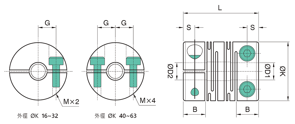 | 型號 | D1 × D2/公差 Tolerance(H8) | ØK | S | B | L | G | M | 重量(g) | |
